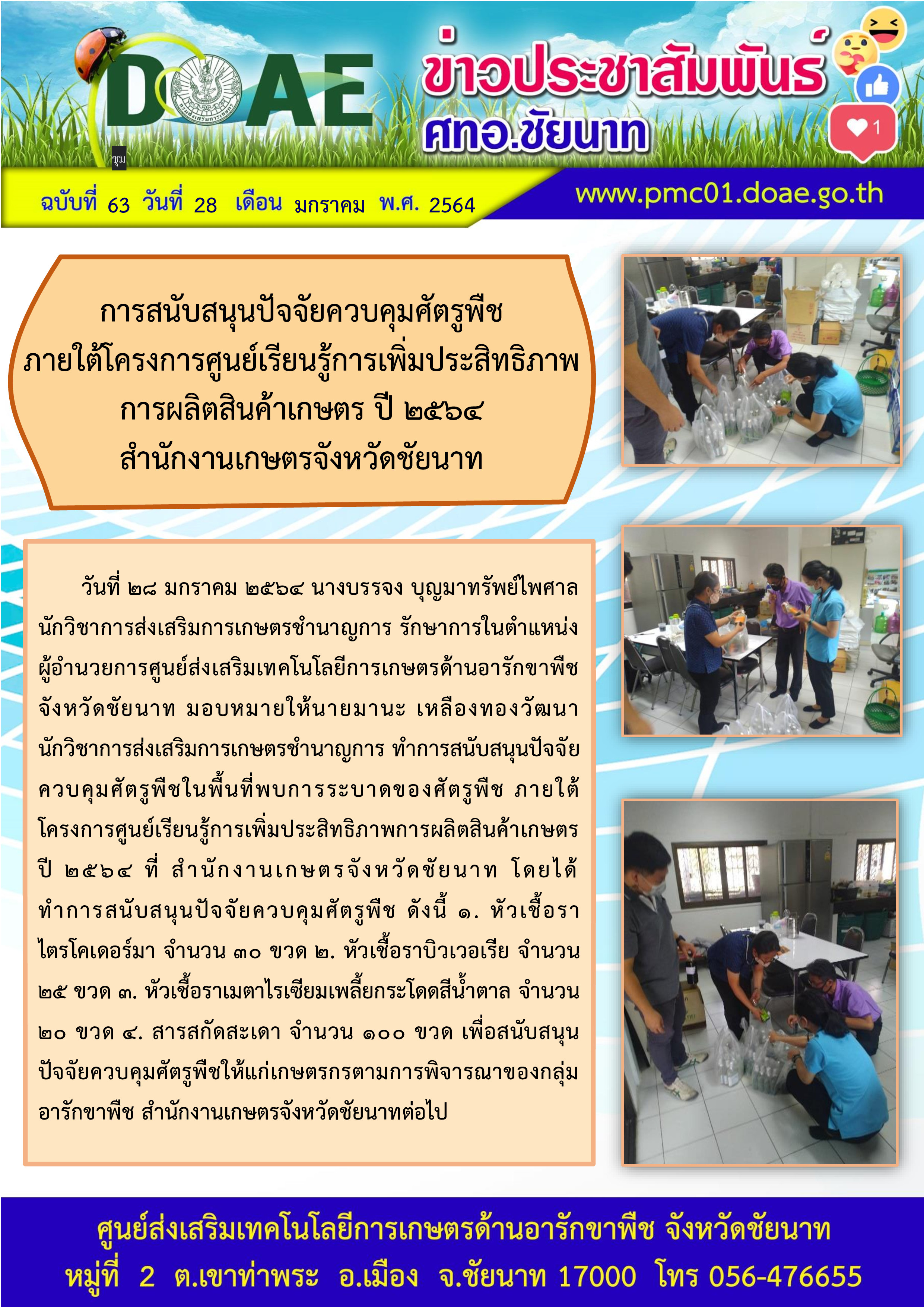 13-1-64 สนับสนุนปัจจัยควบคุมศัตรูพืชตาม โครงการศูนย์เรียนรู้การเพิ่มประสิทธิภาพ การผลิตสินค้าเกษตร ปี 2564
