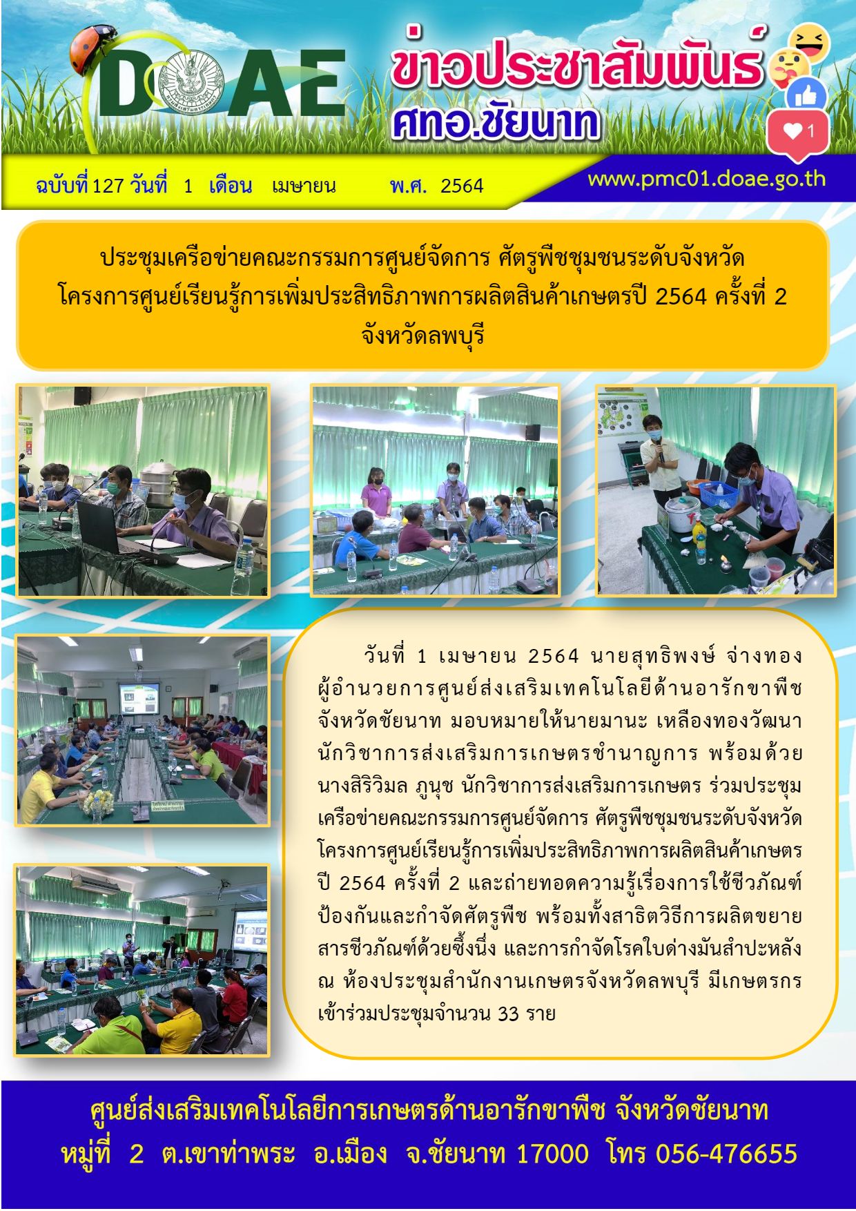 1-4-64 ประชุมเครือข่ายคณะกรรมการศูนย์จัดการ ศัตรูพืชชุมชนระดับจังหวัดโครงการศูนย์เรียนรู้ การเพิ่มประสิทธิภาพการผลิตสินค้าเกษตร ปี 2564 ครั้งที่ 2 และถ่ายทอดความรู้ เรื่องการใช้ชีวภัณฑ์ ป้องกันและกำจัดศัตรูพืช