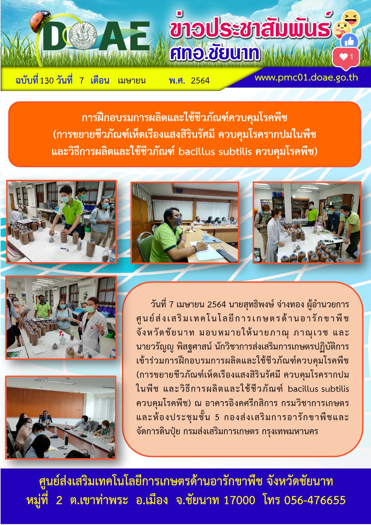 7-4-64 การฝึกอบรมการผลิตและใช้ชีวภัณฑ์ควบคุมโรคพืช (การขยายชีวภัณฑ์เห็ดเรืองแสงสิรินรัศมี ควบคุมโรครากปมในพืช และ วิธีการผลิตและใช้ชีวภัณฑ์ bacillus subtilis ควบคุมโรคพืช)