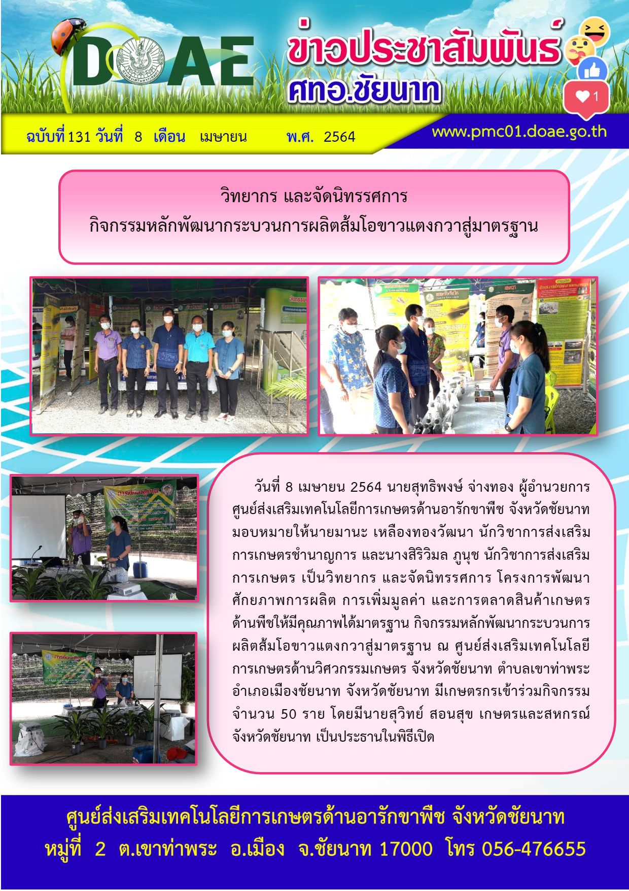 8-4-63 วิทยากร และจัดนิทรรศการ โครงการพัฒนา ศักยภาพการผลิต การเพิ่มมูลค่าและการตลาด สินค้าเกษตรด้านพืช ให้มีคุณภาพได้มาตรฐาน กิจกรรมหลักพัฒนากระบวน การผลิตส้มโอขาวแตงกวาสู่มาตรฐาน