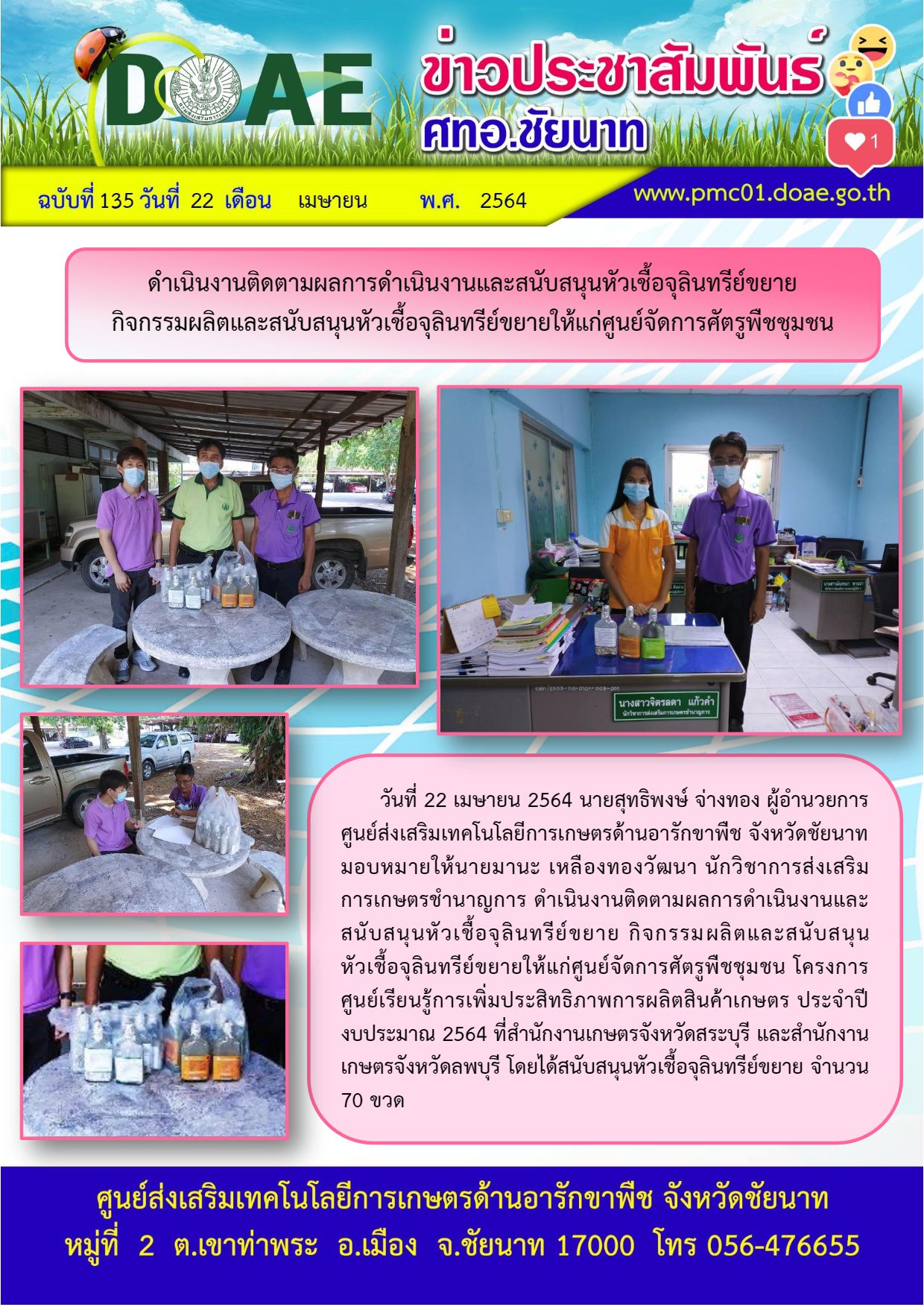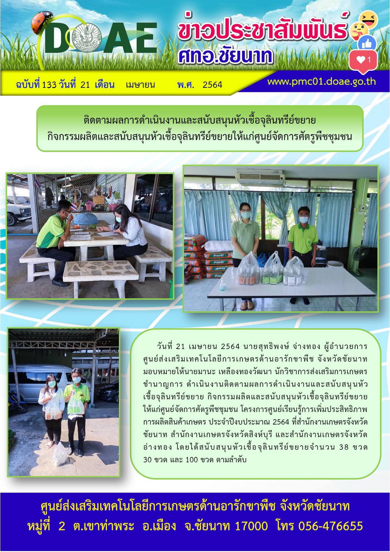 21-4-64 ดำเนินงานติดตามผลการดำเนินงานและสนับสนุน หัวเชื้อจุลินทรีย์ขยาย ที่สำนักงานเกษตรจังหวัดชัยนาท สำนักงานเกษตรจังหวัดสิงห์บุรี และสำนักงานเกษตร จังหวัดอ่างทอง