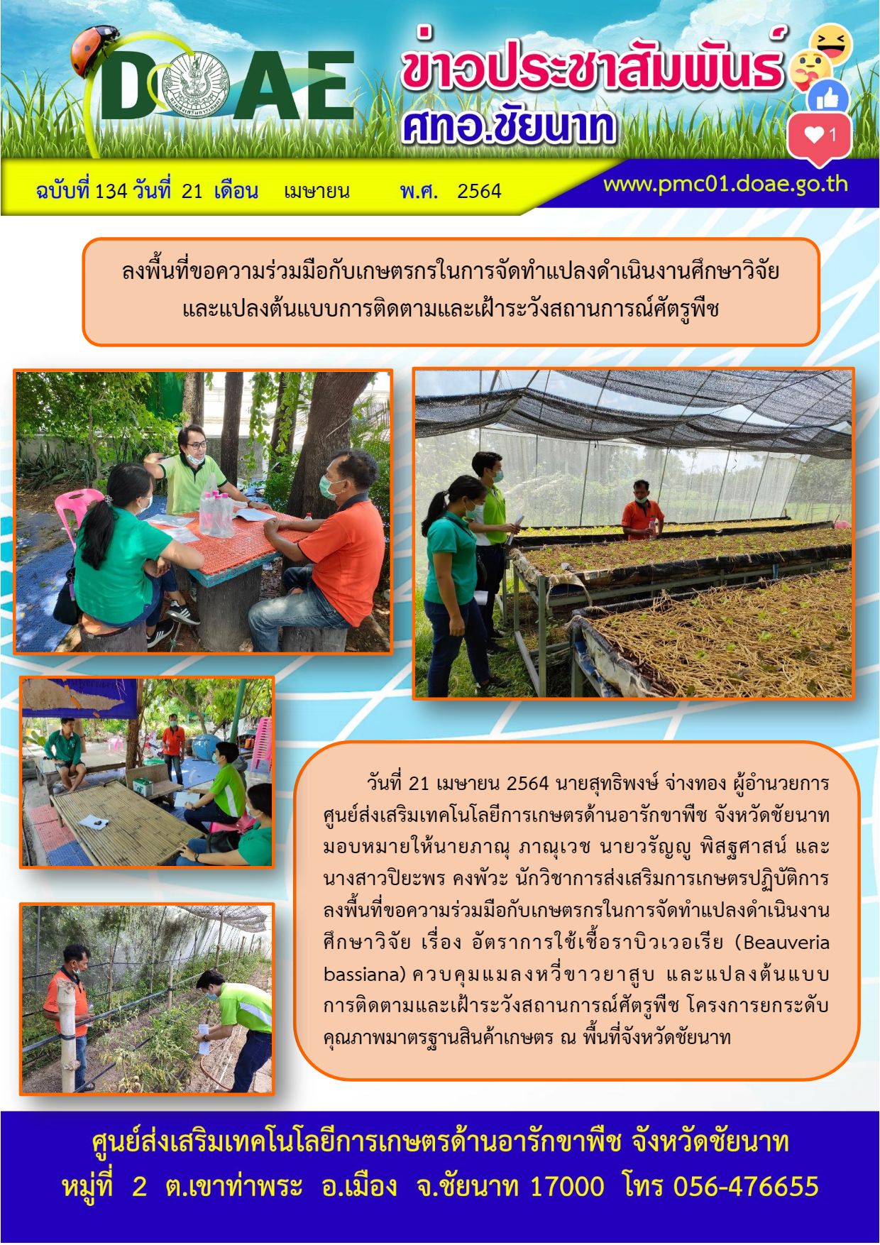 21-4-64 ลงพื้นที่ขอความร่วมมือกับเกษตรกร ในการจัดทำแปลงดำเนินงานศึกษาวิจัย เรื่อง อัตราการใช้เชื้อราบิวเวอเรีย (Beauveria bassiana) ควบคุมแมลงหวี่ขาวยาสูบ และแปลงต้นแบบการติดตามและเฝ้าระวัง สถานการณ์ศัตรูพืช