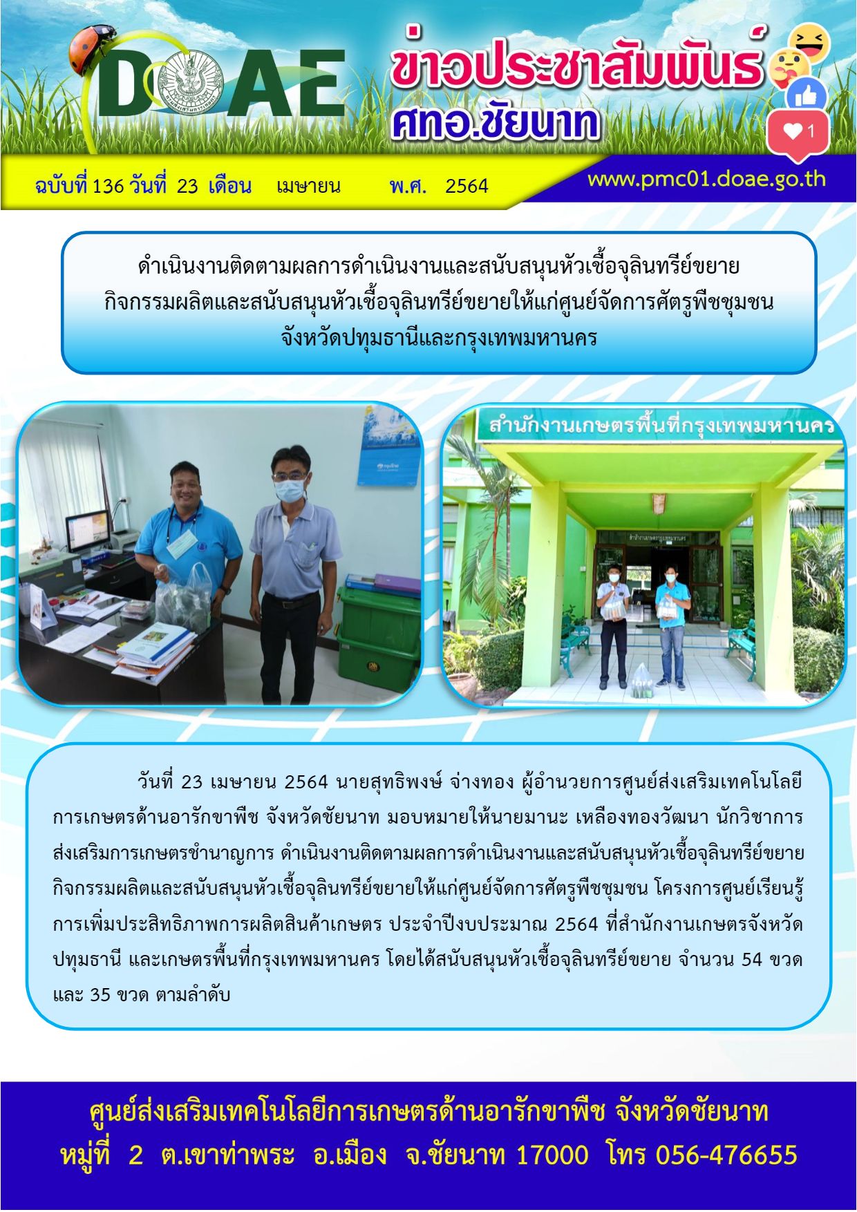23-4-64 ดำเนินงานติดตามผลการดำเนินงานและสนับสนุน หัวเชื้อจุลินทรีย์ขยาย ที่สำนักงานเกษตรจังหวัดปทุมธานี และเกษตรพื้นที่กรุงเทพมหานคร
