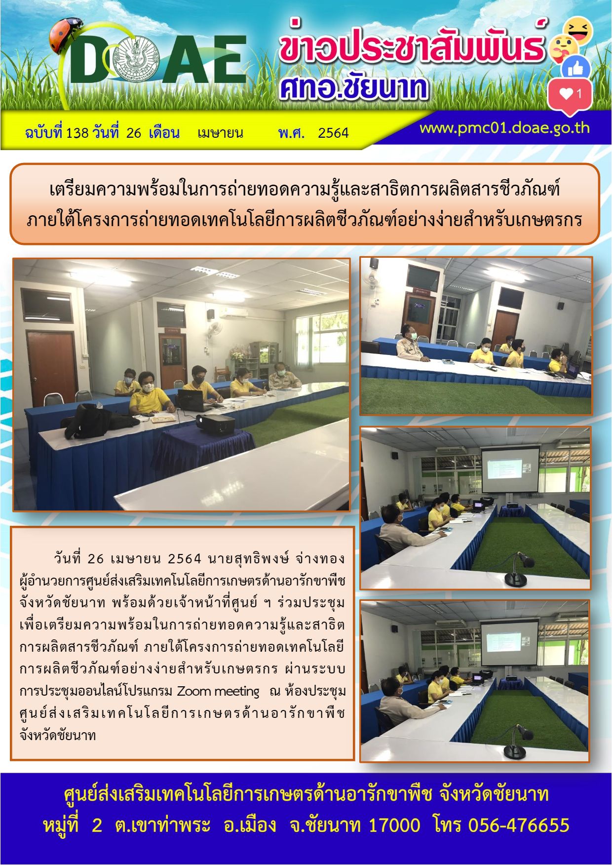 26-4-64 ประชุมเพื่อเตรียมความพร้อมในการถ่ายทอดความรู้ และสาธิตการผลิตสารชีวภัณฑ์ภายใต้ โครงการถ่ายทอดเทคโนโลยี การผลิตชีวภัณฑ์อย่างง่ายสำหรับเกษตรกร