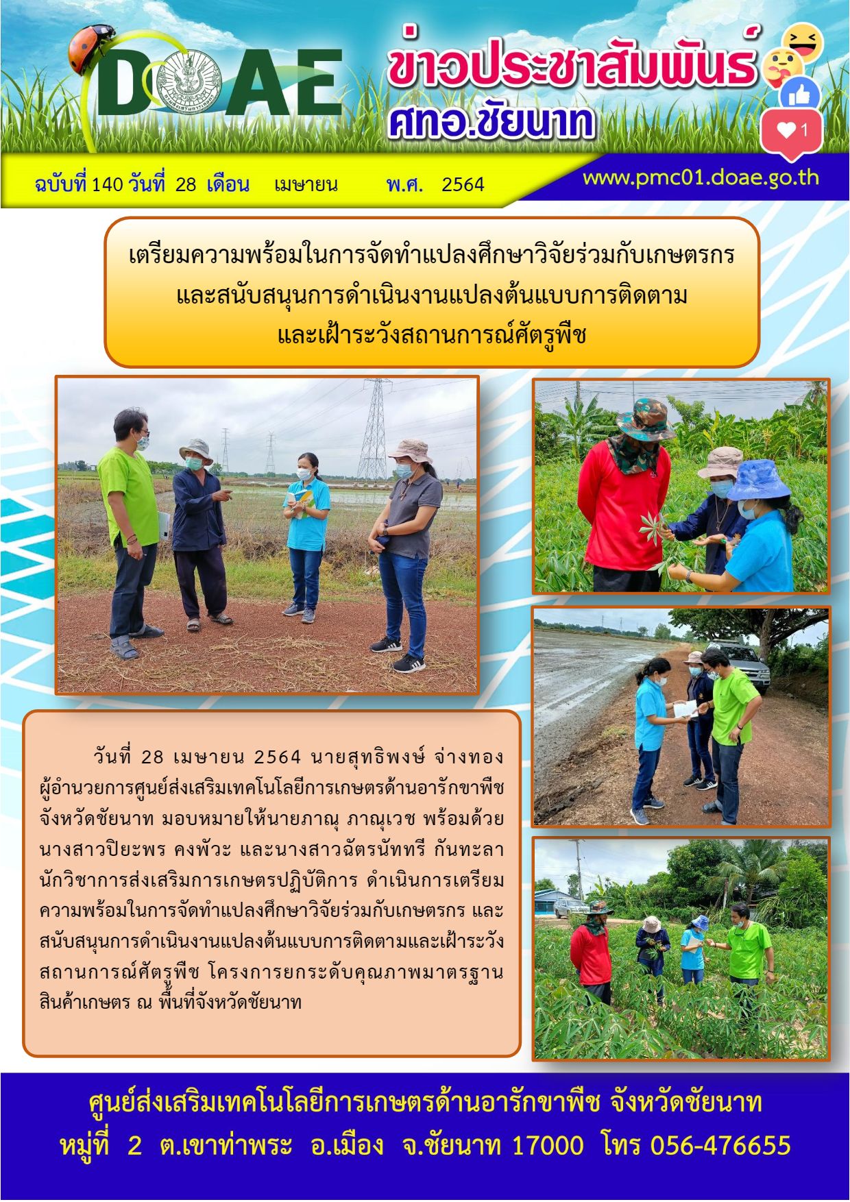 28-4-64 ดำเนินการเตรียมความพร้อมในการจัดทำแปลงศึกษาวิจัย ร่วมกับเกษตรกรและสนับสนุนการดำเนินงาน แปลงต้นแบบการติดตาม และเฝ้าระวังสถานการณ์ศัตรูพืช
