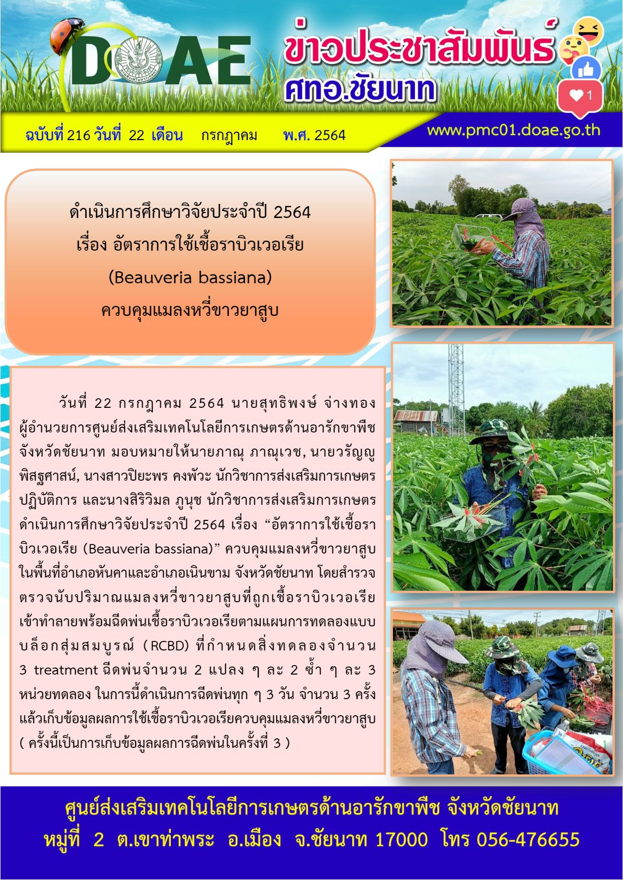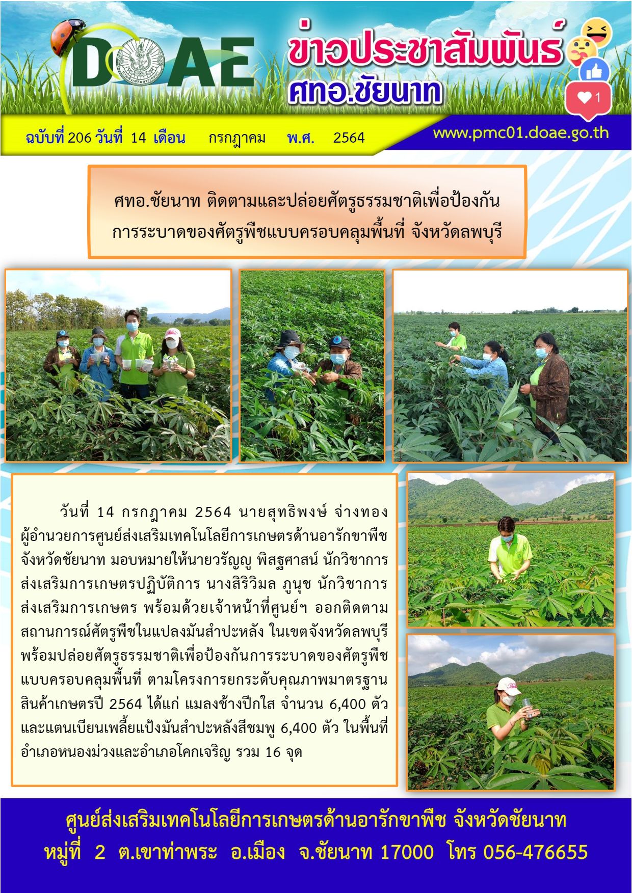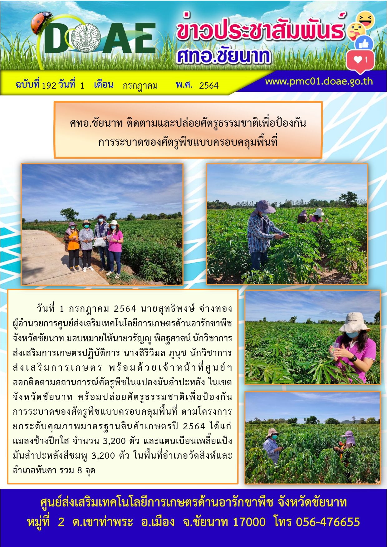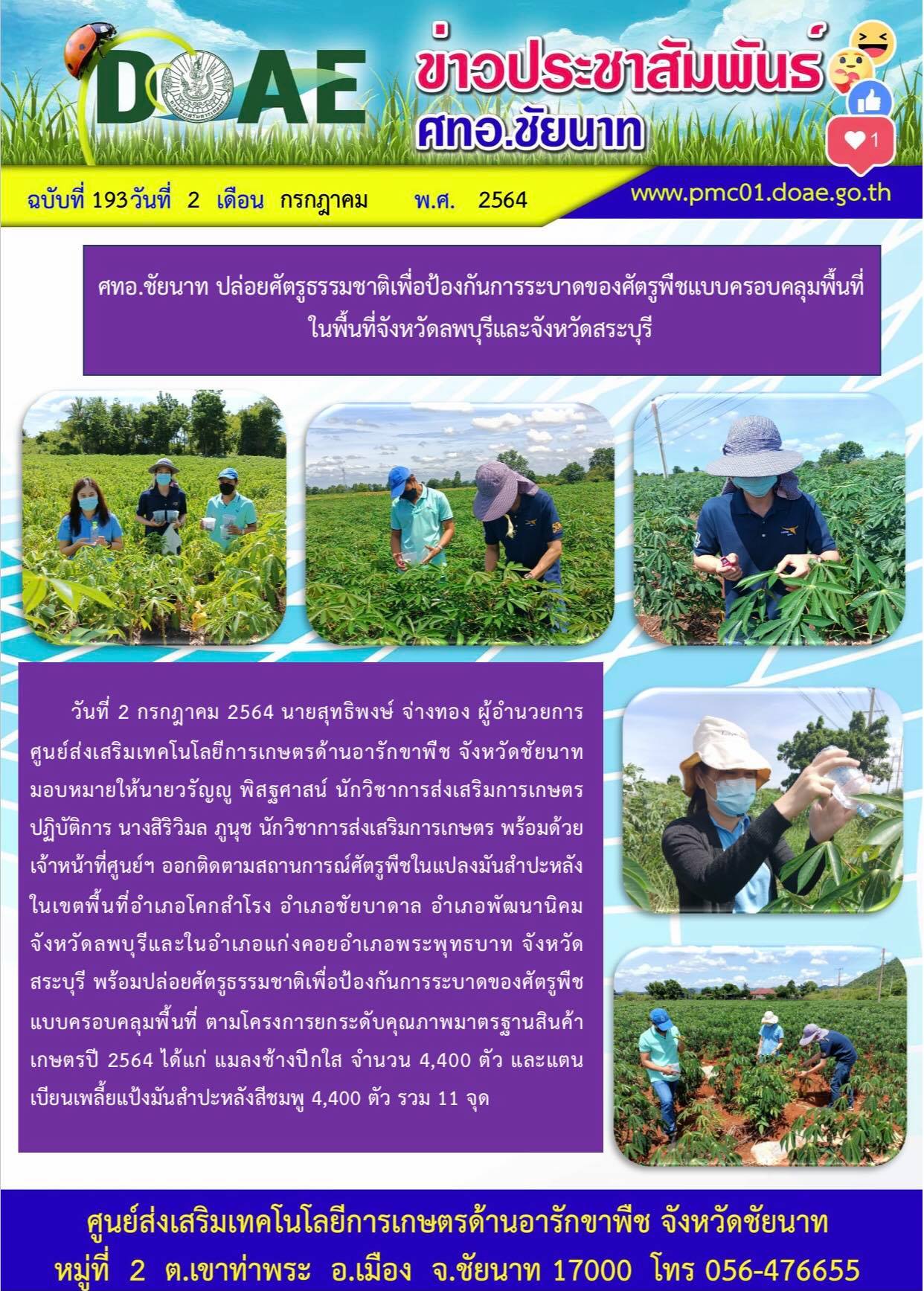 1-7-64 ออกติดตามสถานการณ์ศัตรูพืชในแปลงมันสำปะหลัง ในเขตจังหวัดชัยนาท พร้อมปล่อยศัตรูธรรมชาติ เพื่อป้องกันการระบาดของศัตรูพืชแบบครอบคลุมพื้นที่