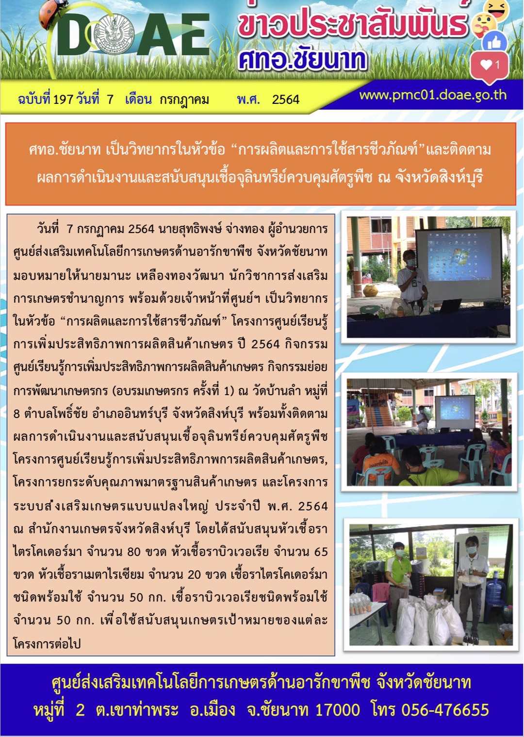 7-7-64 วิทยากร ในหัวข้อ “การผลิตและการใช้สารชีวภัณฑ์” โครงการศูนย์เรียนรู้การเพิ่มประสิทธิภาพ การผลิตสินค้าเกษตร ปี 2564