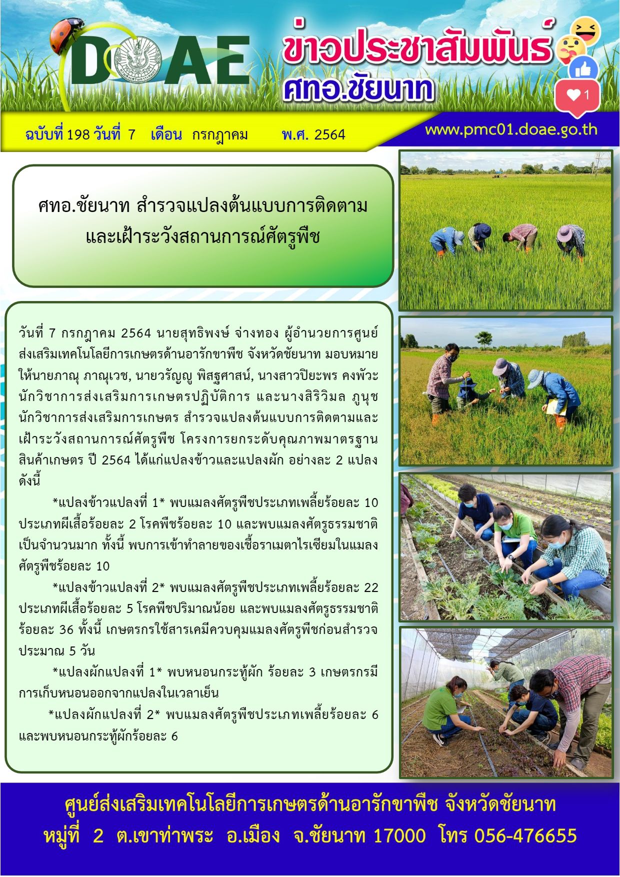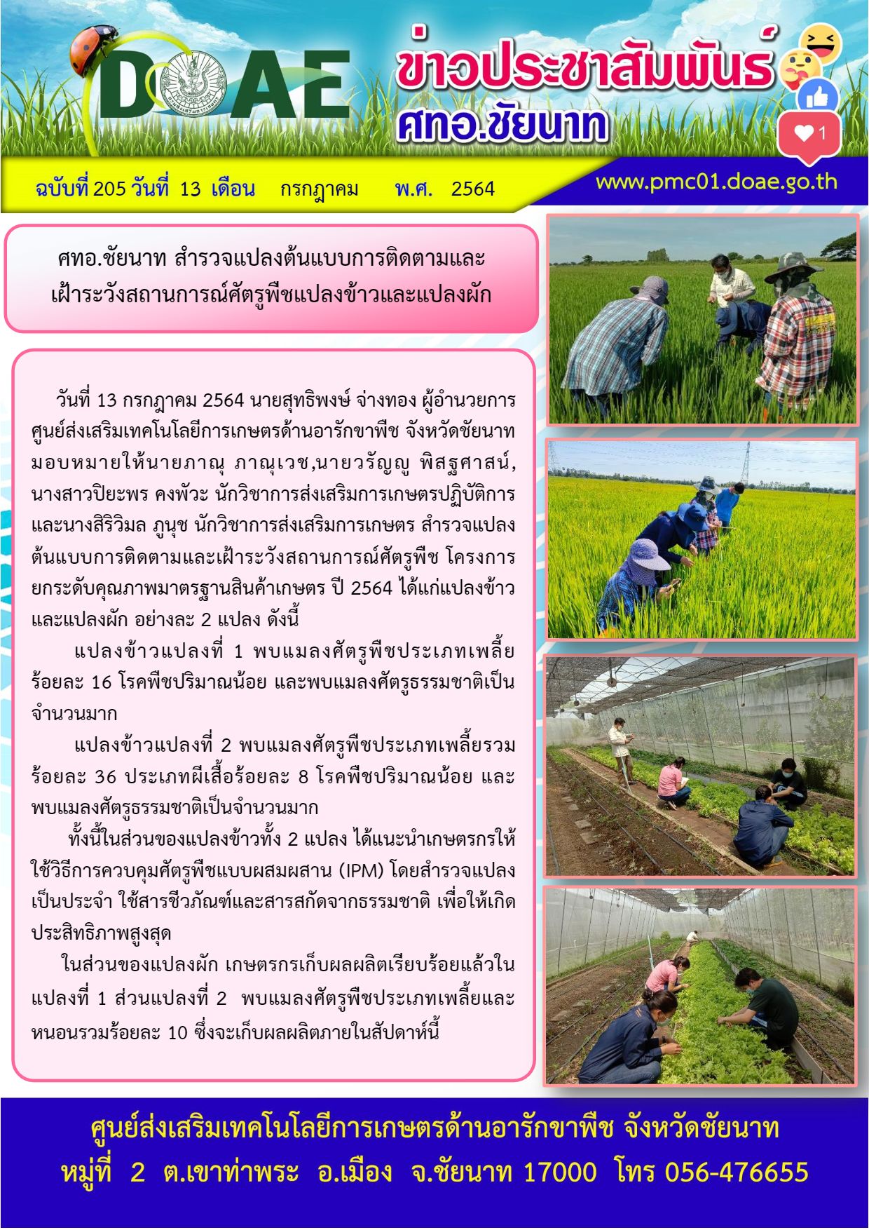 13-7-64 สำรวจแปลงต้นแบบการติดตามและเฝ้าระวัง สถานการณ์ศัตรูพืช โครงการยกระดับคุณภาพมาตรฐาน สินค้าเกษตร ปี 2564 ได้แก ่แปลงข้าวและแปลงผัก