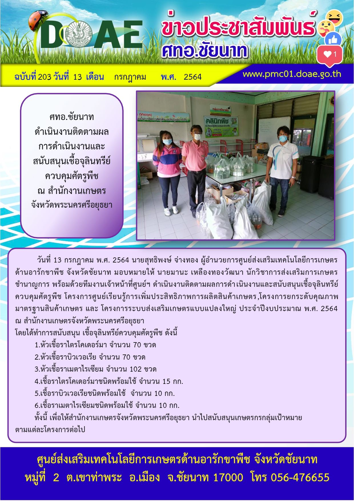 13-7-64 ดำเนินงานติดตามผลการดำเนินงานและสนับสนุน เชื้อจุลินทรีย์ควบคุมศัตรูพืช จังหวัดพระนครศรีอยุธยา