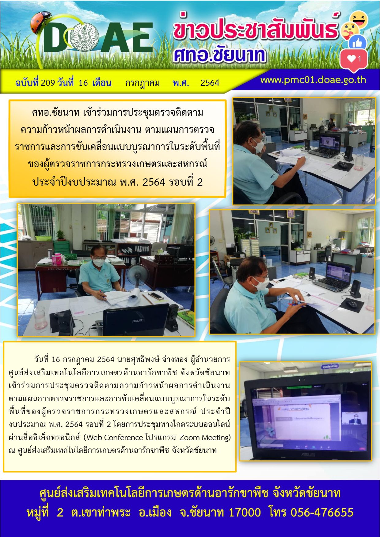 16-7-64 เข้าร่วมการประชุมตรวจติดตามความก้าวหน้า ผลการดำเนินงานตามแผนการตรวจราชการและ การขับเคลื่อนแบบบูรณาการในระดับพื้นที่ของ ผู้ตรวจราชการกระทรวงเกษตรและสหกรณ์ ประจำปีงบประมาณ พ.ศ. 2564 รอบที่ 2