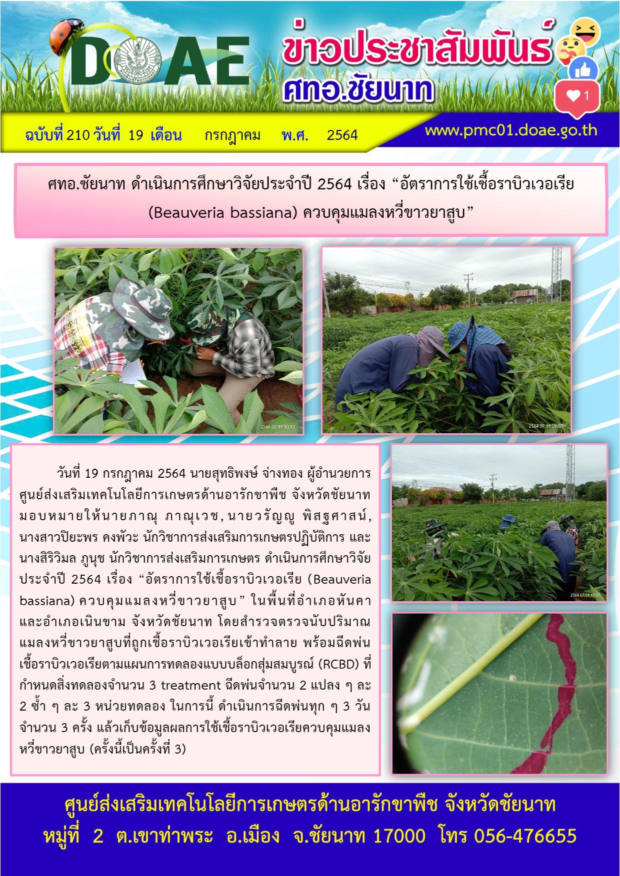 19-7-64 ดำเนินการศึกษาวิจัยประจำปี 2564 เรื่อง อัตราการใช้เชื้อราบิวเวอเรีย (Beauveria bassiana) ควบคุมแมลงหวี่ขาวยาสูบ