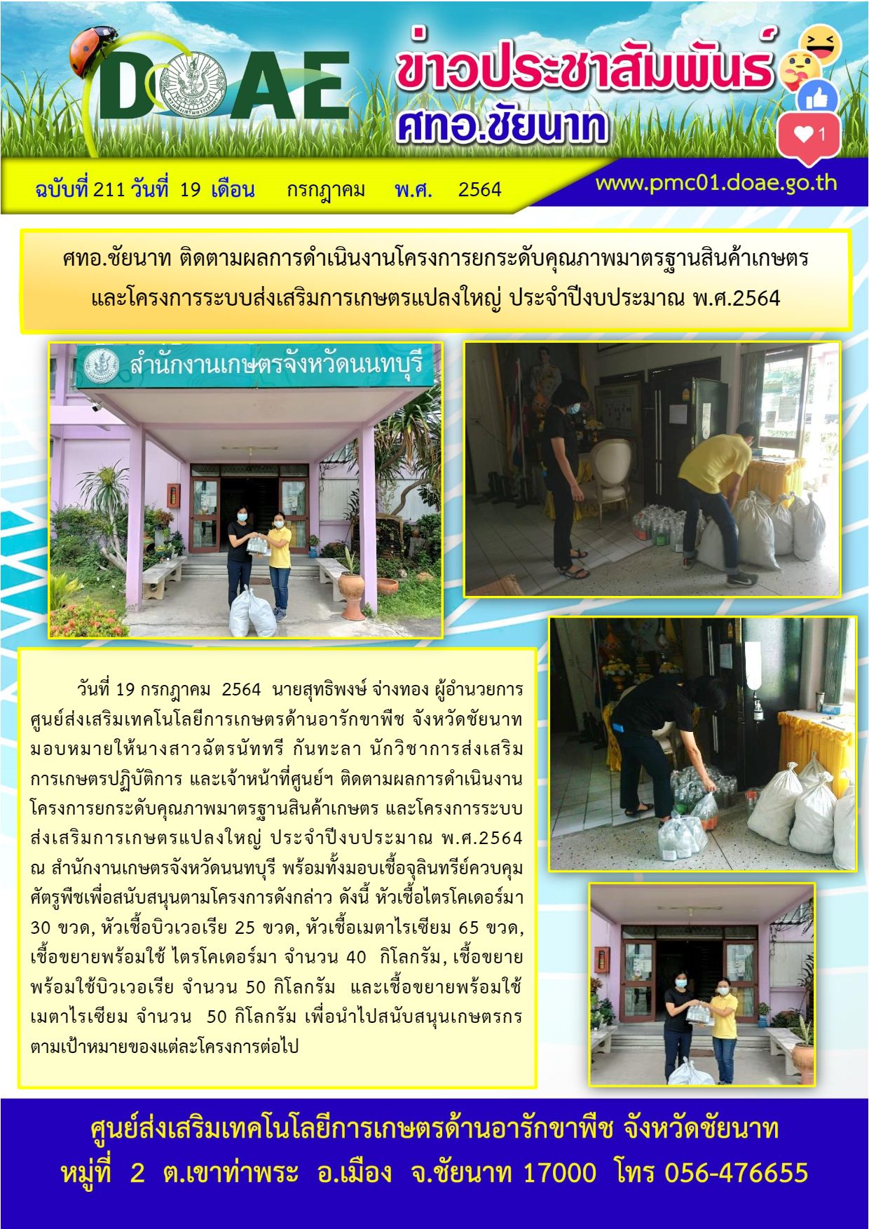 19-7-64 ติดตามผลการดำเนินงานโครงการยกระดับ คุณภาพมาตรฐานสินค้าเกษตร และโครงการระบบ ส่งเสริมการเกษตรแปลงใหญ่ ประจำปีงบประมาณ พ.ศ.2564 ณ สำนักงานเกษตรจังหวัดนนทบุรี