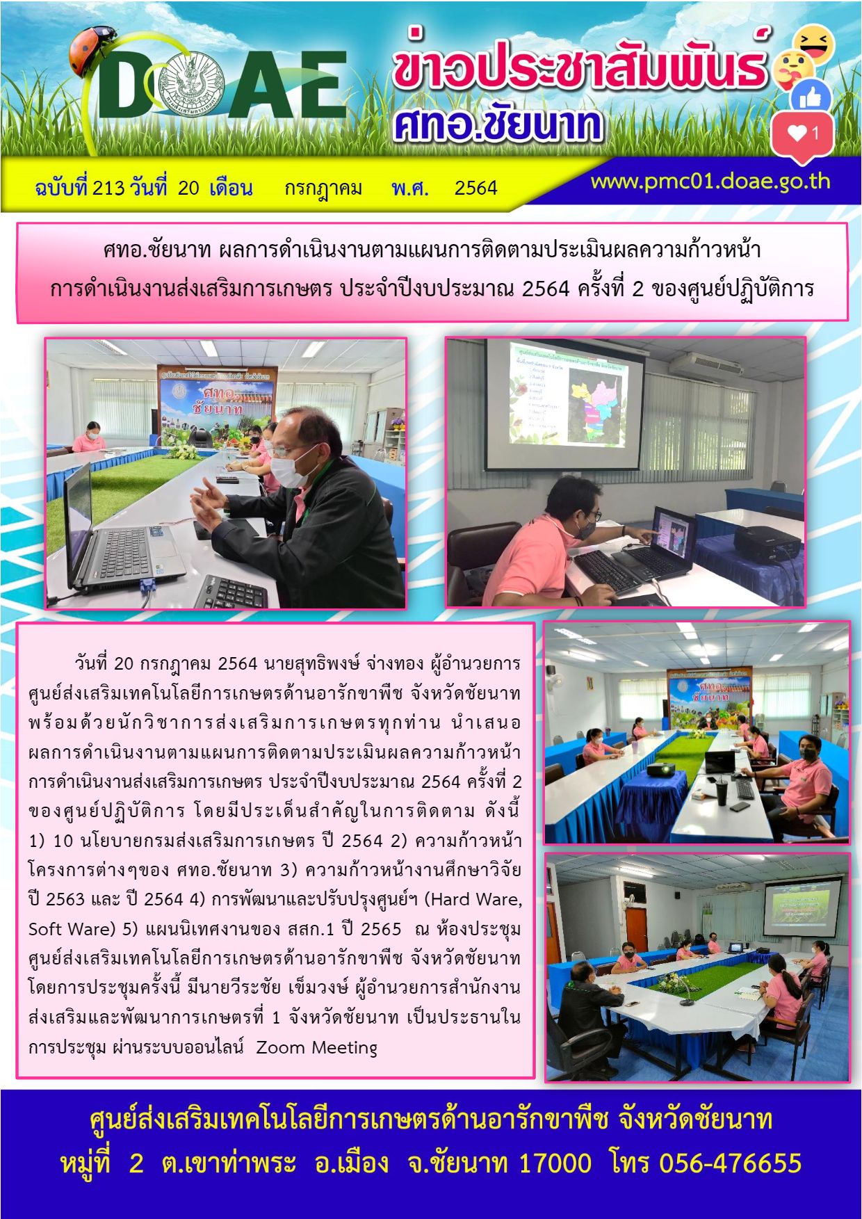 20-7-64 การดำเนินงานตามแผนการติดตามประเมินผล ความก้าวหน้าการดำเนินงานส่งเสริมการเกษตร ประจำปีงบประมาณ 2564 ครั้งที่ 2 ของศูนย์ปฏิบัติการ