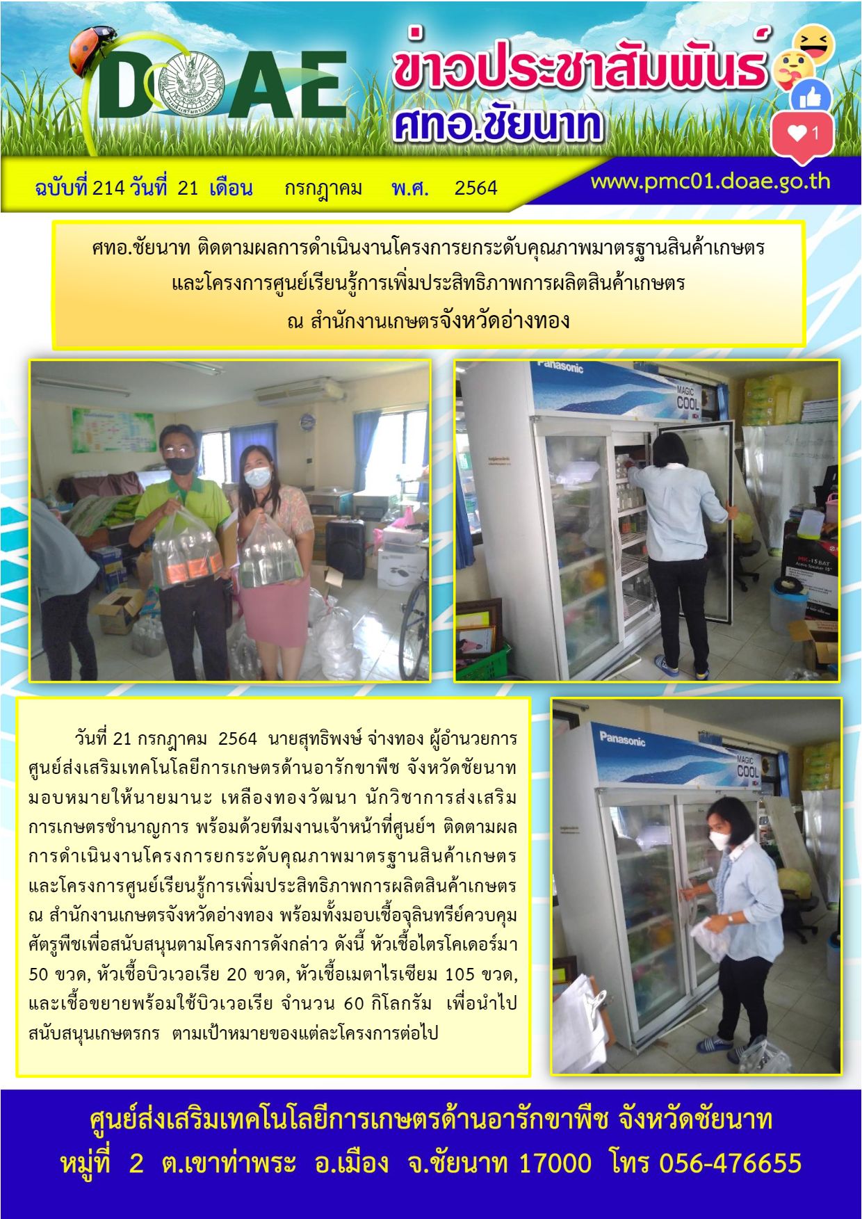 21-7-64 ติดตามผลการดำเนินงานโครงการยกระดับ คุณภาพมาตรฐานสินค้าเกษตรและโครงการศูนย์เรียนรูู้ การเพิ่มประสิทธิภาพการผลิตสินค้าเกษตร ณ สำนักงานเกษตรจังหวัดอ่างทอง