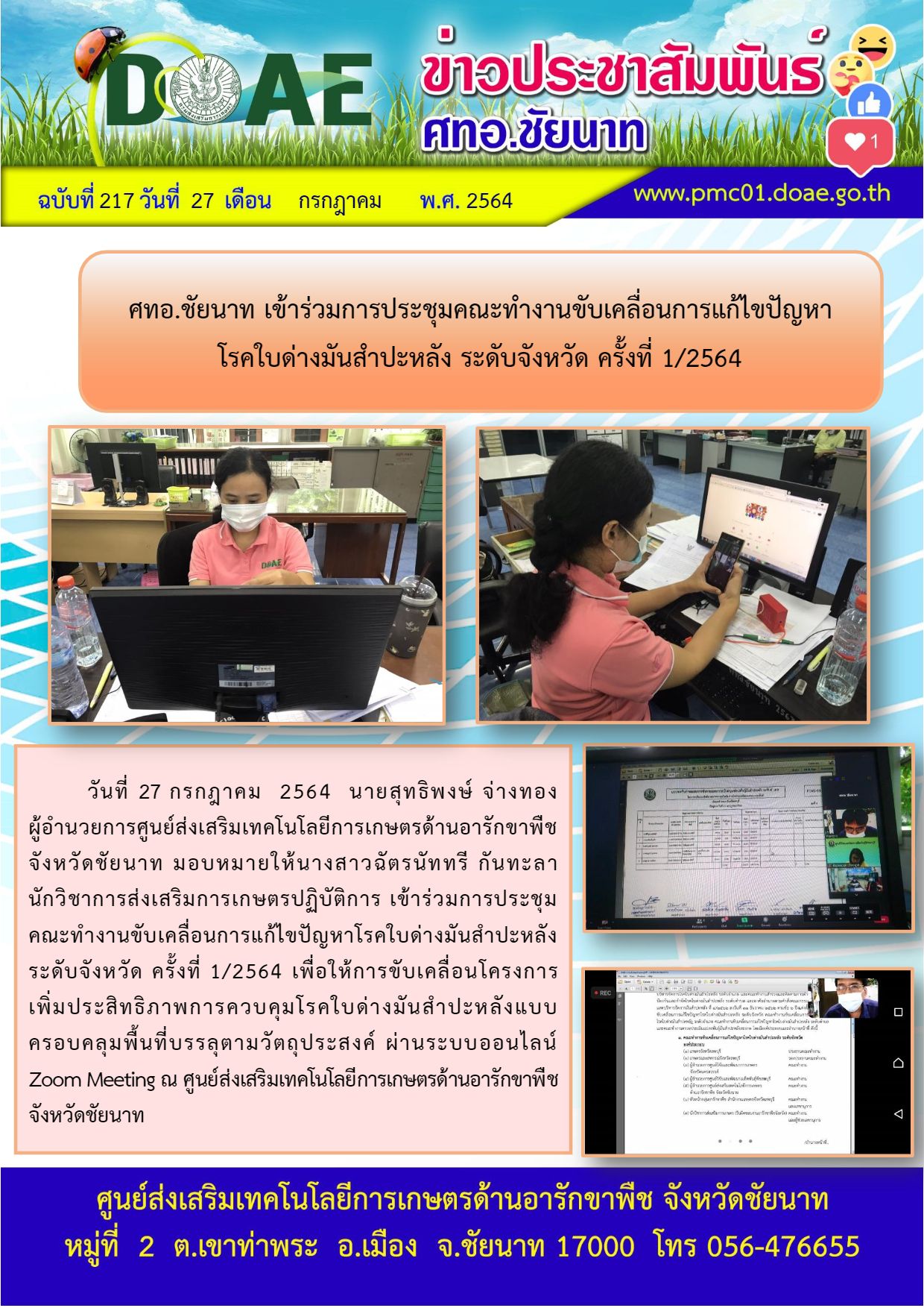 27-7-64 เข้าร่วมการประชุมคณะทำงานขับเคลื่อนการแก้ไขปัญหา โรคใบด่างมันสำปะหลัง ระดับจังหวัด ครั้งที่ 1/2564