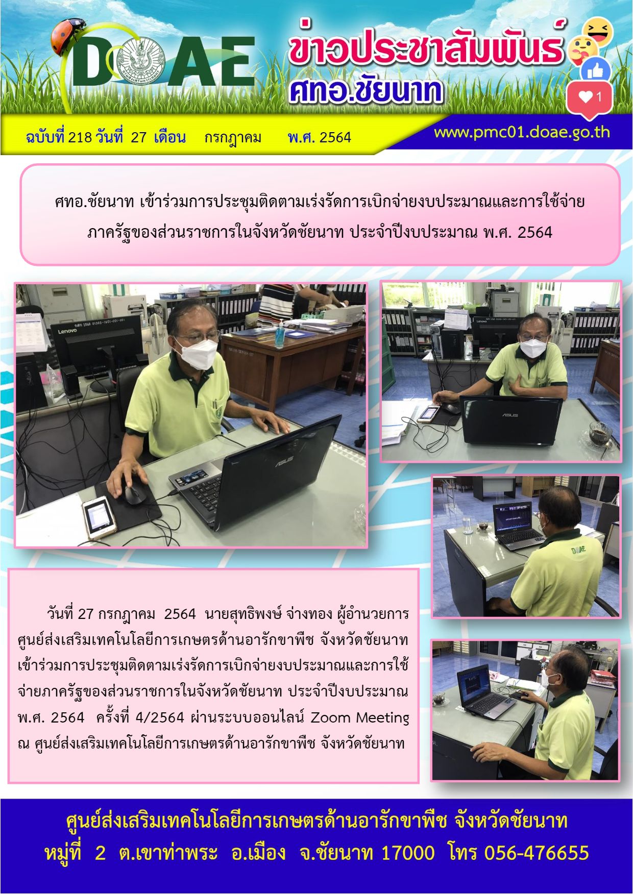 27-7-64 เข้าร่วมการประชุมติดตามเร่งรัดการเบิกจ่ายงบประมาณ และการใช้จ่ายภาครัฐของส่วนราชการในจังหวัดชัยนาท ประจำปีงบประมาณ พ.ศ. 2564 ครั้งที่ 4/2564