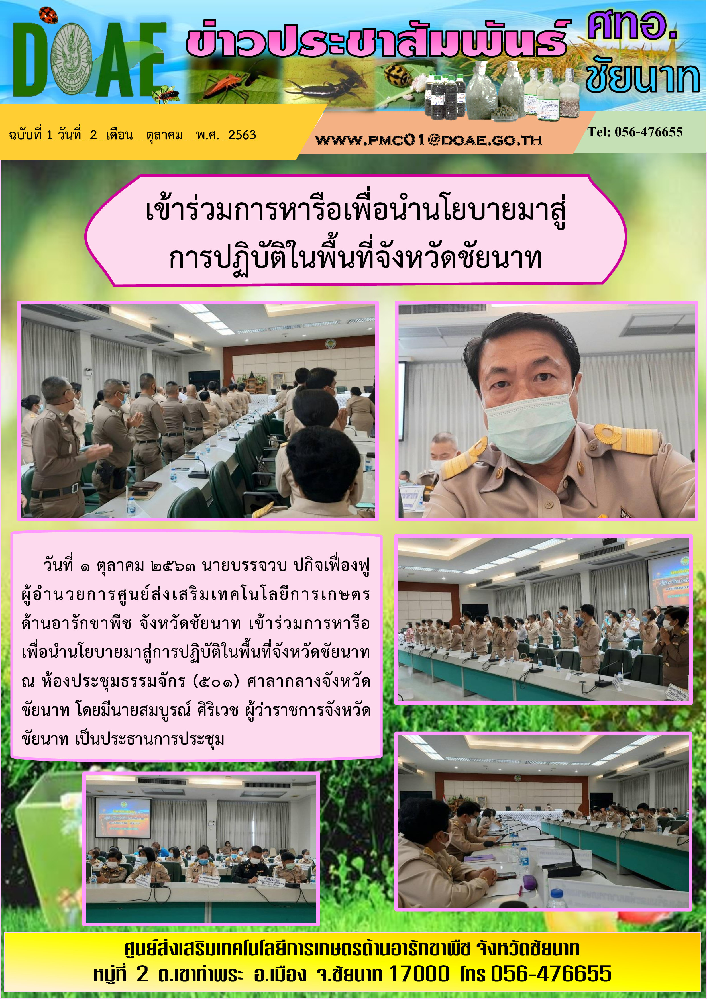 2-10-63 เข้าร่วมการหารือ เพื่อนำนโยบายมาสู่การปฏิบัติ ในพื้นที่จังหวัดชัยนาท