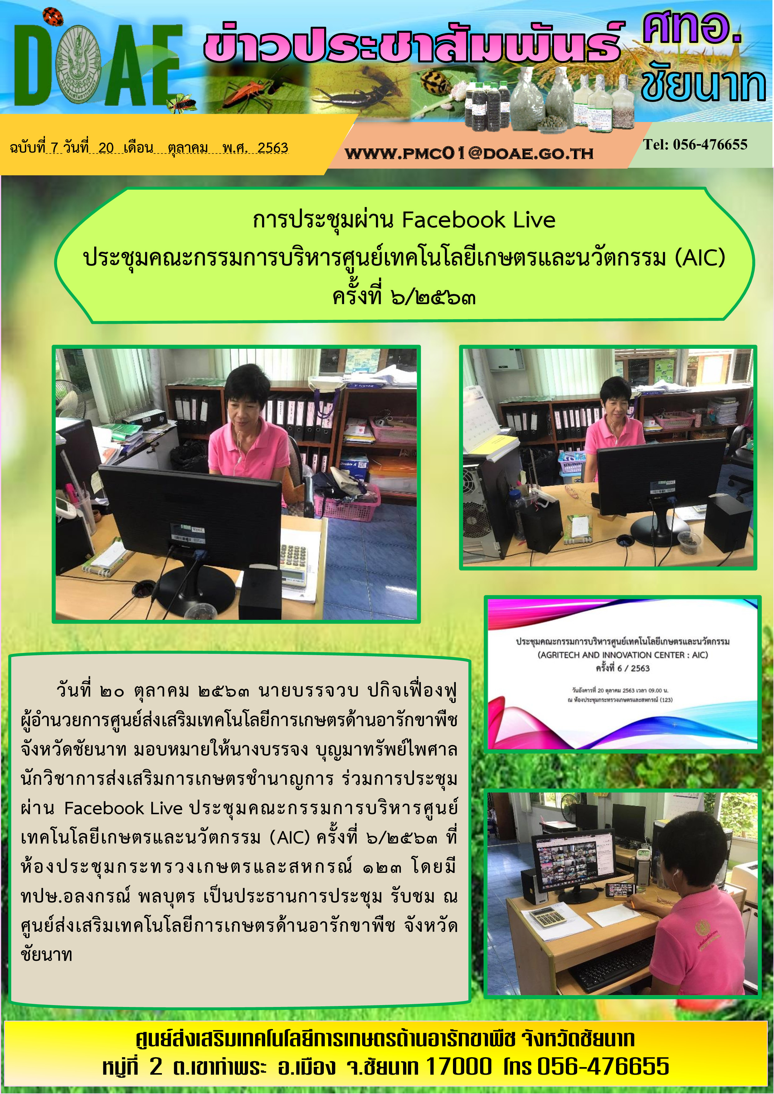 20-10-63 การประชุมผ่าน Facebook Live ประชุมคณะกรรมการบริหารศูนย์ เทคโนโลยีเกษตรและนวัตกรรม (AIC) ครั้งที่ 6/2563