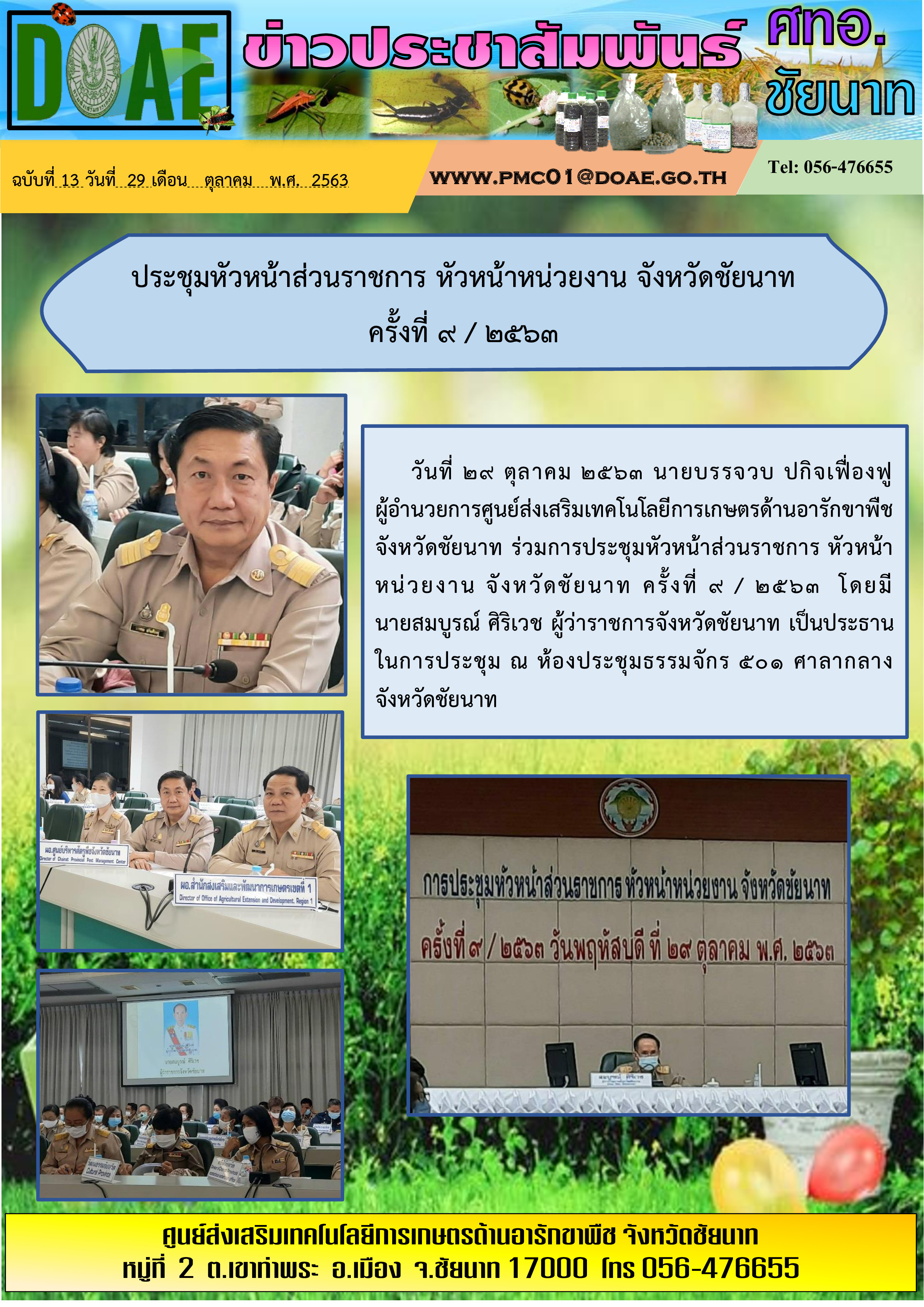 29-10-63 การประชุมหัวหน้าส่วนราชการ หัวหน้าหน่วยงาน จังหวัดชัยนาท ครั้งที่ 9 / 2563